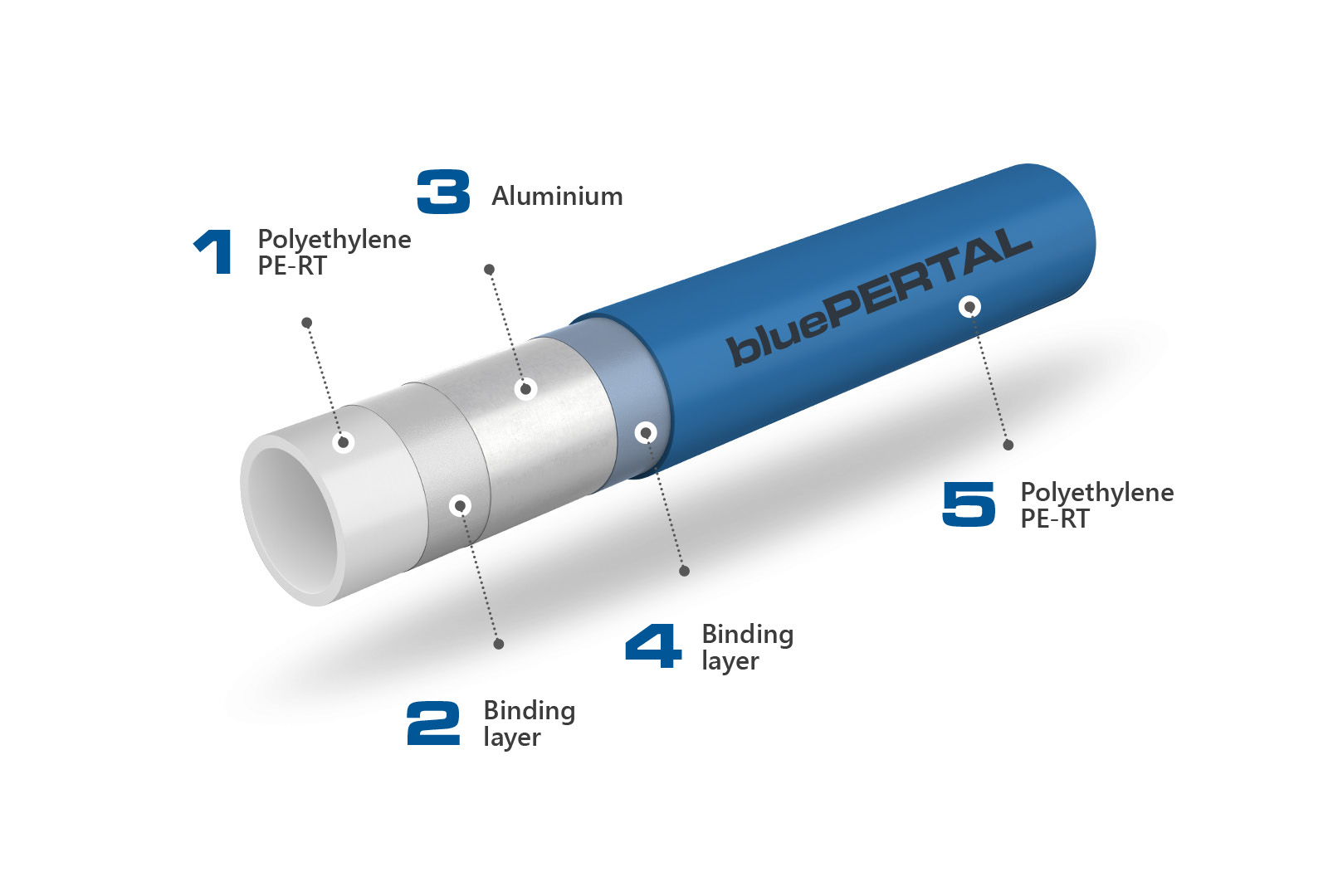 Пятислойная (5L) конструкция труб bluePERTPEXC и PERT II надёжно защищает с антидиффузионный слой EVOH от повреждений в процессе монтажа.